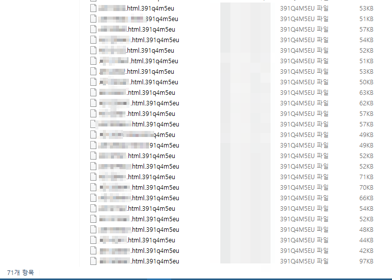 신종랜섬웨어 복구를 하려면 일단, 비용이 막대하게 들어가기 때문에, 저희 정직한과 같은, 신종랜섬웨어 복구 가능성 높은 곳에 도움을 요청해 주셔야 합니다. 신종랜섬웨어에 걸렸을 시에 증상을 기억하고 이와 같은 현상이 서버 및 드라이브에서 발견되었다면 지금 바로 요청 주셔야 하는데요. 우선 감염이 되면 데이터들이 전부 열리지 않는 것과 동시에 확장자 맨뒤에 이상한 알파벳의 조합으로 영문 혹은 알파벳이 조합된 이름이 생성됩니다. 그리고 랜섬노트라 불리는 메모장이 만들어지는데요 그안에는 현재 열리지 않는 파일들이 암호화가 되었다고 하며, 암호를 풀기 위해서는 디크립트라는 열쇠가 있어야 한다고 합니다.